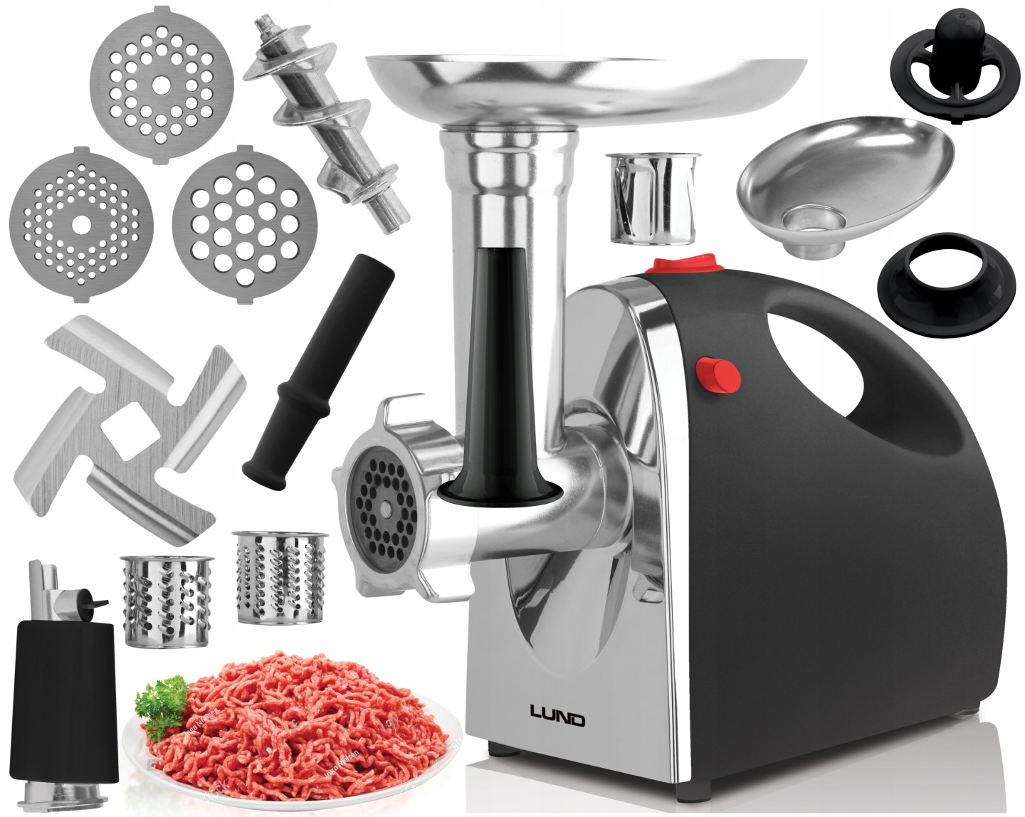Багатофункціональна м'ясорубка 5in1 від LUND з максимальною потужністю 1200 Вт і продуктивністю 1,5 кг/хв.