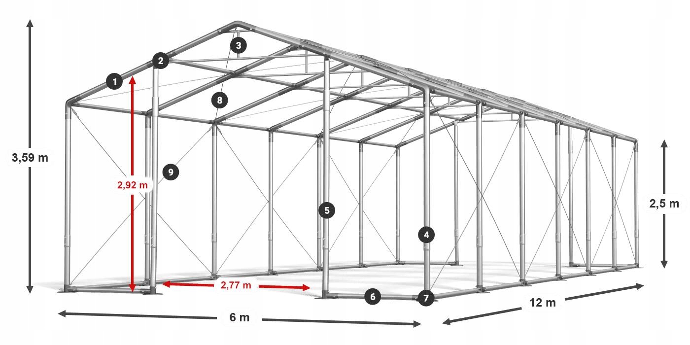 6м х 12м х 2,5/3,59м